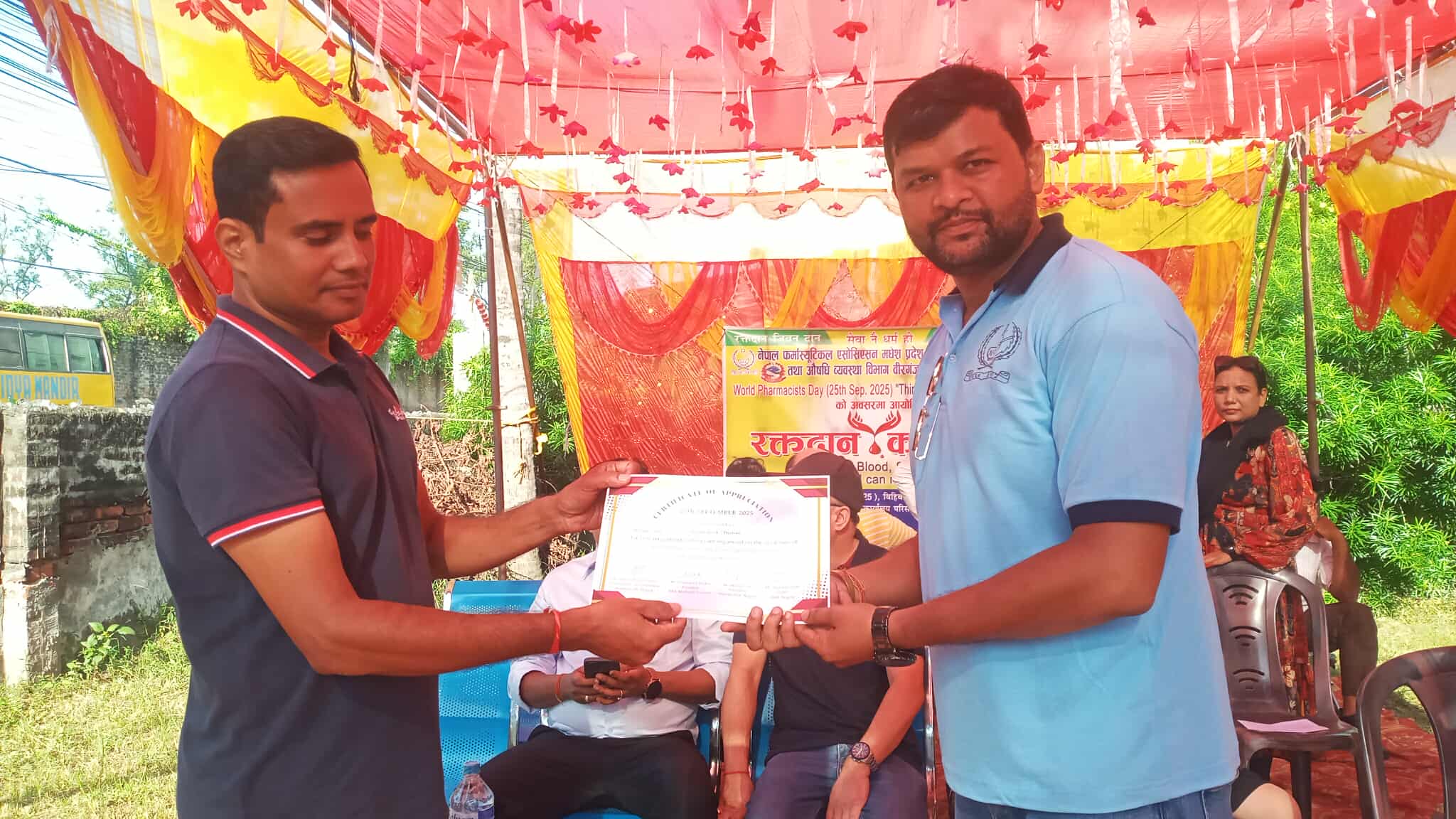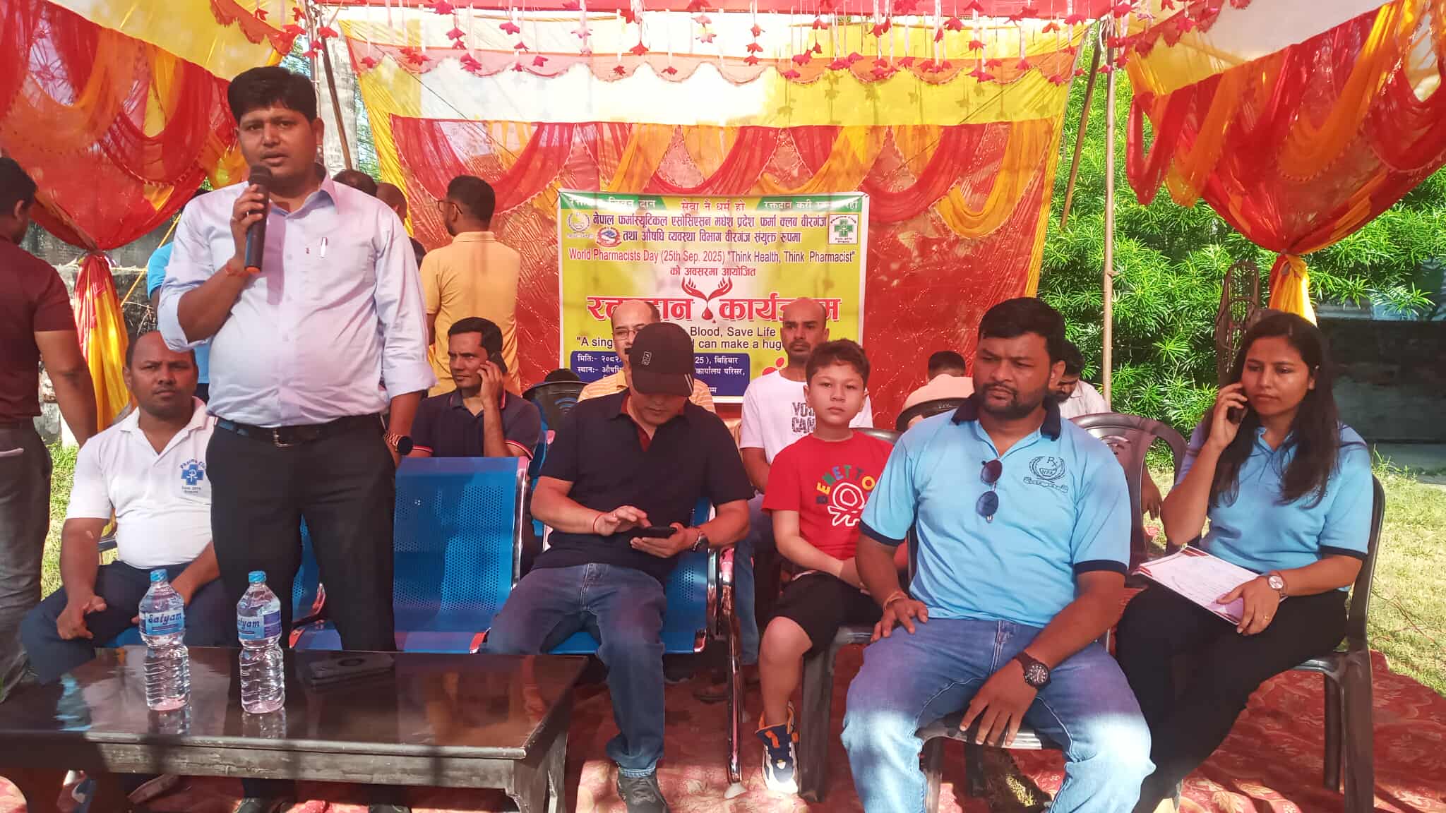 उक्त कार्यक्रम नेपाल फर्मास्युटिकल एसोसिएसन मधेस प्रदेश, फार्मा क्लब बीरगंज, र औषधि व्यवस्था विभाग बीरगंजको संयुक्त आयोजनामा सम्पन्न भएको हो। कार्यक्रम औषधि व्यवस्था विभाग, बीरगंजको परिसरमा सम्पन्न भएको थियो, जहाँ विभिन्न स्वास्थ्यकर्मी, फार्मासिस्ट, औषधि व्यवसायी, एसोसिएसनका पदाधिकारीहरु लगायतका ब्यक्तिहरुले रक्तदान गरेका थिए।