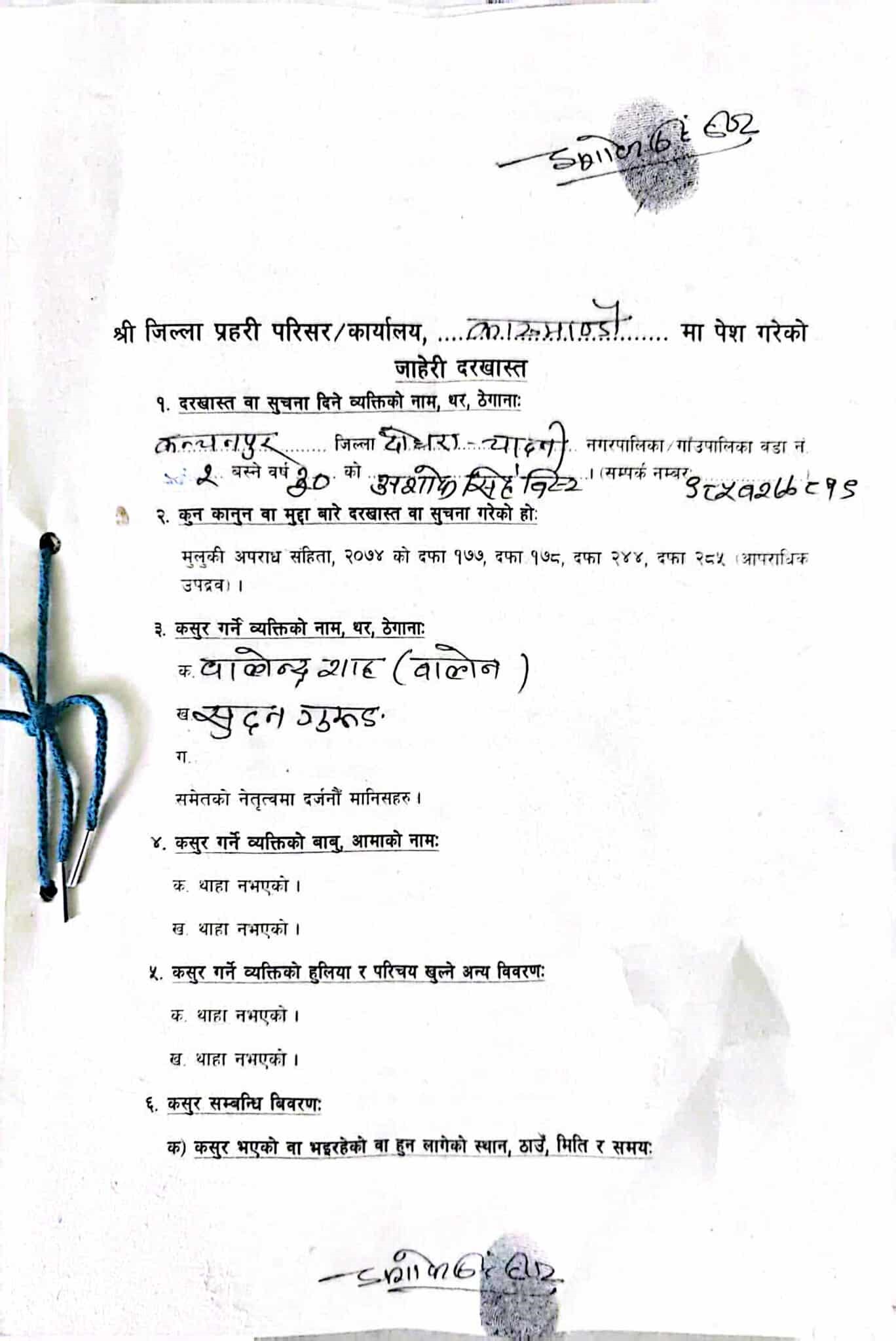 यसअघि एमाले निकट अनेरास्ववियूले बालेन र सुधनविरुद्ध देशका विभिन्न जिल्लामा जाहेरी दिएको छ । ती जाहेरी जाँचबुझ आयोगमा पठाइने प्रहरीले बताएको थियो ।