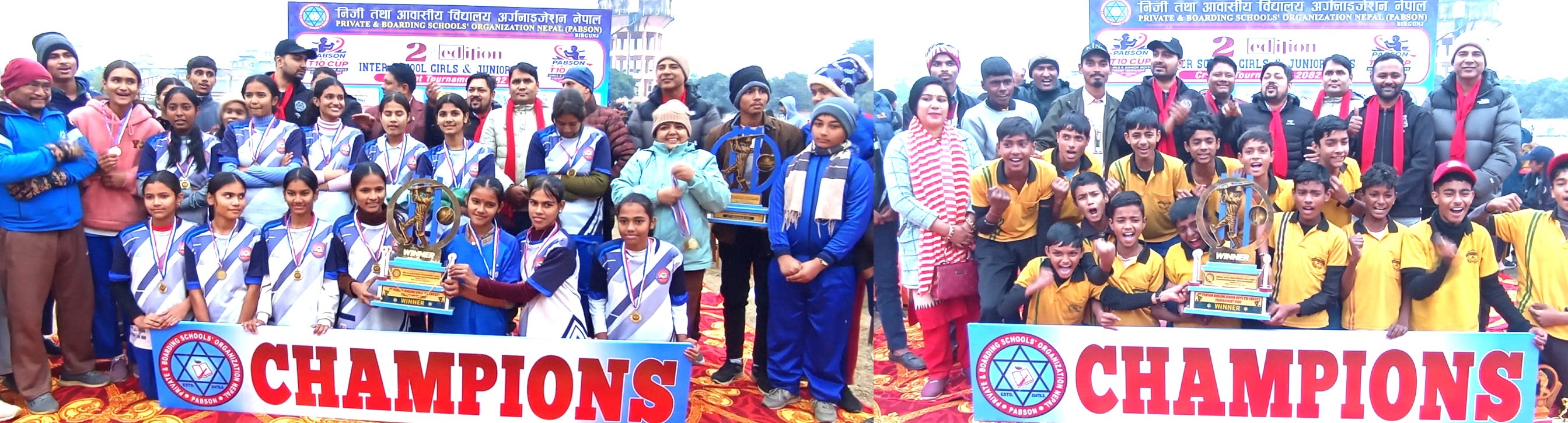 फाइनल खेलमा जुनियर बोयजतर्फ ब्लु हेभन स्कूलले साउथ जोन स्कूललाई पराजित गर्दै यस वर्षको च्याम्पियन बने । साउथ जोन स्कूल उपविजेतामा सीमित रह्यो। त्यस्तै, गर्लसतर्फ लिटिल फ्लावर एकेडेमी स्कूलले नेशनल एकेडेमी स्कूललाई हराउँदै च्याम्पियनको उपाधि हात पारे। नेशनल एकेडेमी स्कूलले उपविजेताको सन्तोष लिन बाध्य भयो।