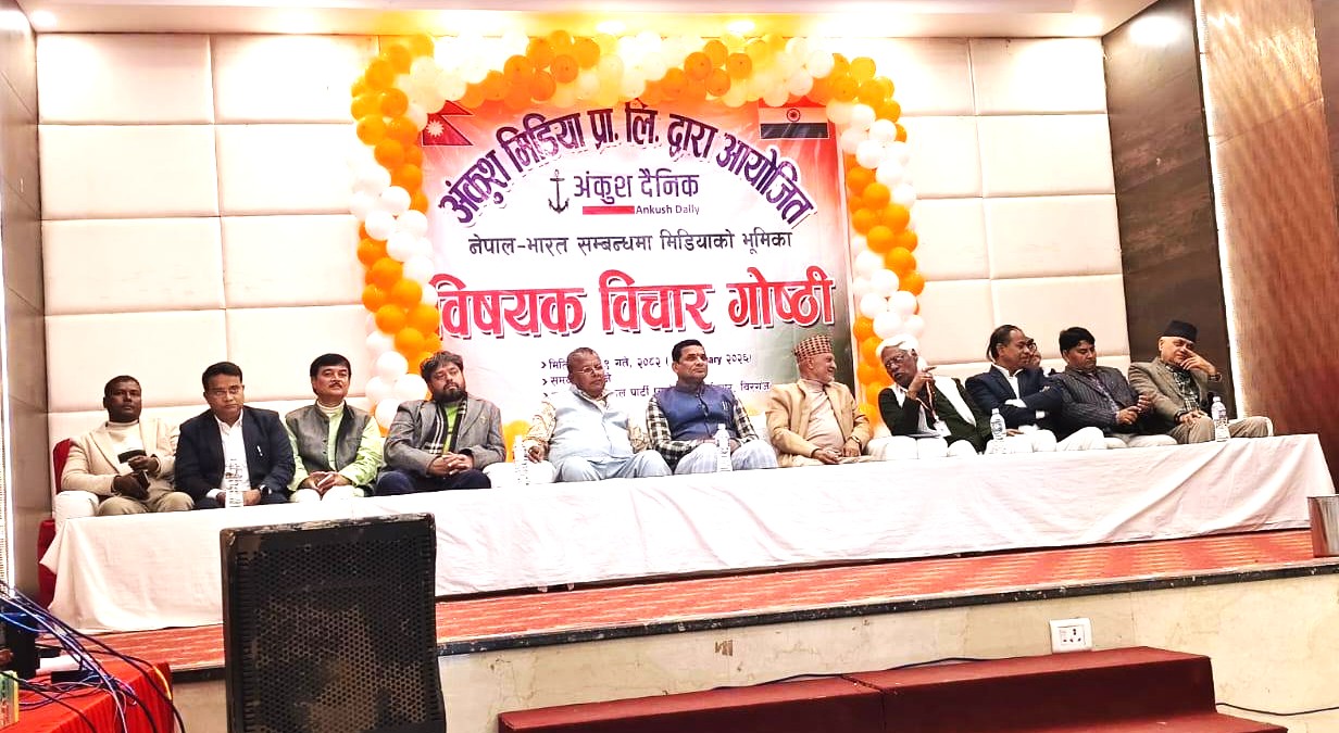नेपाल–भारतबीचको ऐतिहासिक, सामाजिक तथा सांस्कृतिक सम्बन्धलाई थप सुदृढ बनाउन मिडियाको भूमिका अत्यन्त महत्वपूर्ण हुने विषयमा केन्द्रित रही पर्सामा एक विचार गोष्ठी सम्पन्न भएको छ। पर्सा जिल्लाको वीरगञ्जस्थित टाउनहल पार्टी प्यालेसमा अंकुश मिडिया प्रा।लि।को आयोजनामा उक्त विचार गोष्ठी सम्पन्न भएको हो। अंकुश दैनिकका अध्यक्ष दिपेन्द्र चौहानको अध्यक्षतामा आयोजित कार्यक्रममा मधेश प्रदेश सरकारका भूमि व्यवस्था, कृषि तथा सहकारी मन्त्री श्याम पटेल प्रमुख अतिथिका रूपमा सहभागी रहनुभएको थियो।