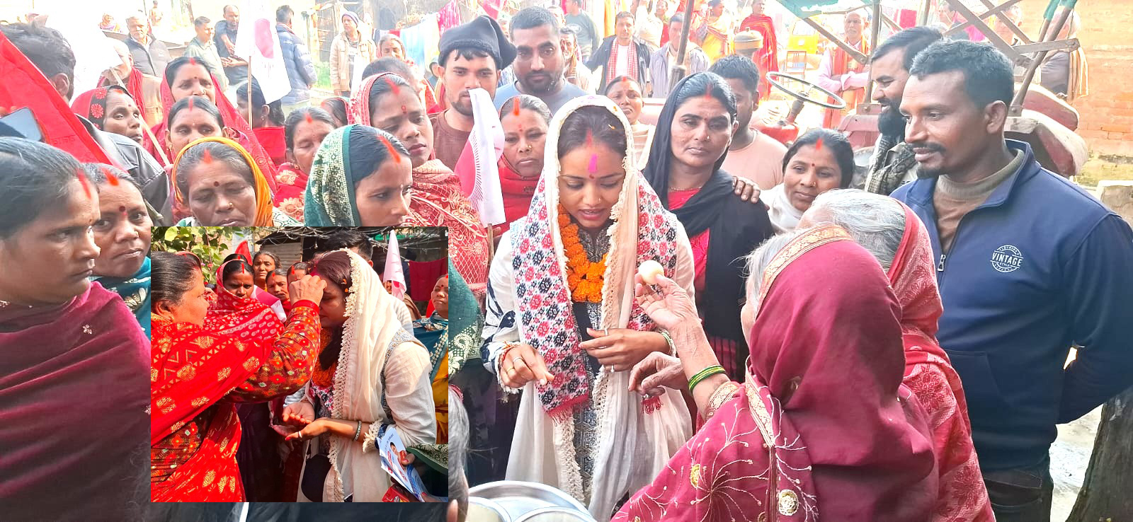 पर्सा क्षेत्र नम्बर–२ अन्तर्गत वीरगञ्ज महानगरपालिका–२४ बहुअरीमा आज नेकपा एमालेको घरदैलो कार्यक्रम भव्य रूपमा सम्पन्न भएको छ।घरदैलोको क्रममा स्थानियहरुले उम्मेदवार रिमा कुमारी यादवलाई फुलमाला लगाएर स्वागत गर्दै सम्मान प्रकट गरेका थिए।घरदैलोका क्रममा टोल–टोलमा पुगेकी यादवलाई मतदाताले “रिमा यादव लक्ष्मीको स्वरुप हुन्, उनको जित निश्चित छ” भन्दै खुलेर समर्थन जनाएका थिए। उनीहरुले उनलाई फुलमाला ,अबिर टिका लगाई सगुनको रुपमा दही र मिठाई खुवाएर सम्मान गरेका थिए ।